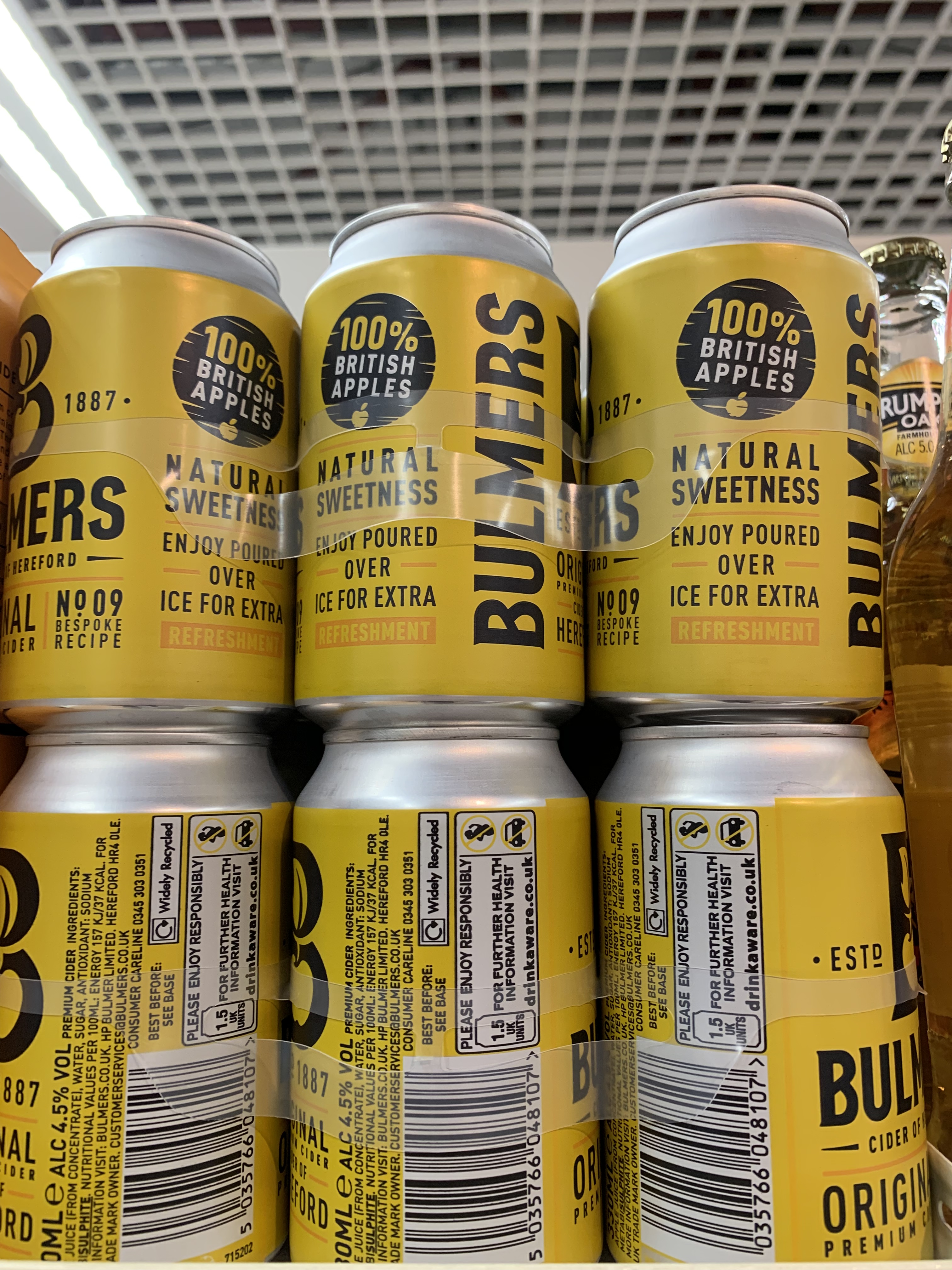 Well, if only it were that simple. Because Bulmers has undone their commendable ‘step in the right direction’ by adding another new bit of misinformation to their cans: a big logo boldly proclaiming ‘100% British Apples’. The logo is far more prominent than the ingredients list.