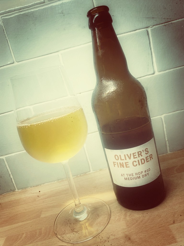 Having had the undiluted pleasure of trying a few ciders from Tom Oliver, I’ve learned to expect the unexpected from the unofficial Grand Wizard of British cidermaking. Tonight’s journey into the unknown is his At The Hop #10, the latest iteration of his cider-infused-with-hops voyage of discovery.