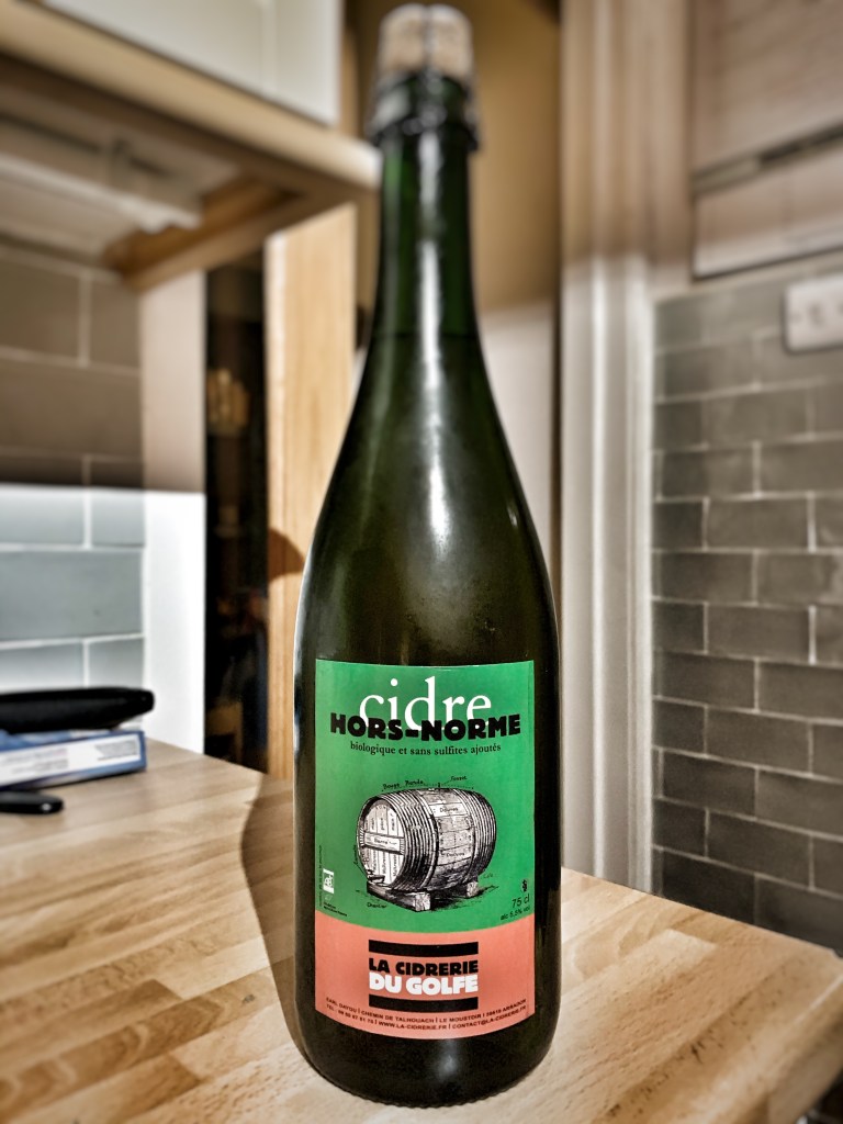 One of the bottles that caught my eye was a cider from a producer I’d never heard of before: La Cidrerie du Golfe from Brittany. Roddy and the team at the store do an amazing job of sourcing ciders that fit Roddy’s demanding criteria which broadly translates as: proper cider and reasonably rare. Roddy, as I have been discovering over the last six months or so, is a man of exquisite tastes as well as being a properly lovely bloke.